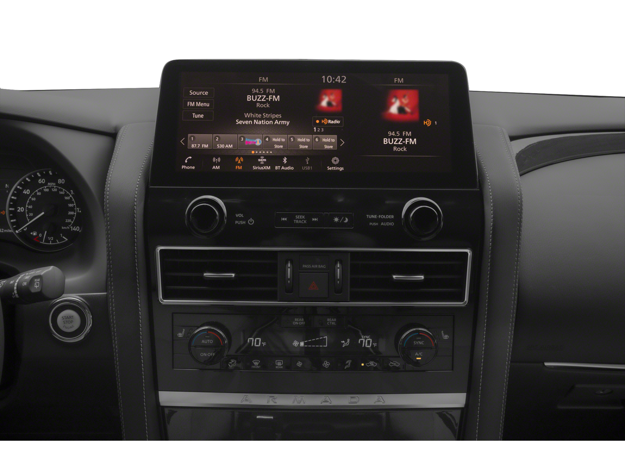 - Radio: NissanConnect w/SiriusXM -inc: 6-speaker audio system, wireless Apple CarPlay, Android Auto, Nissan door to door navigation, 12.3" color display w/multi-touch control, SiriusXM Traffic and Travel Link w/3 month complimentary trial access, NissanConnect services powered by SiriusXM, Bluetooth hands-free phone system, hands-free text messaging assistant and Wi-Fi hotspot
